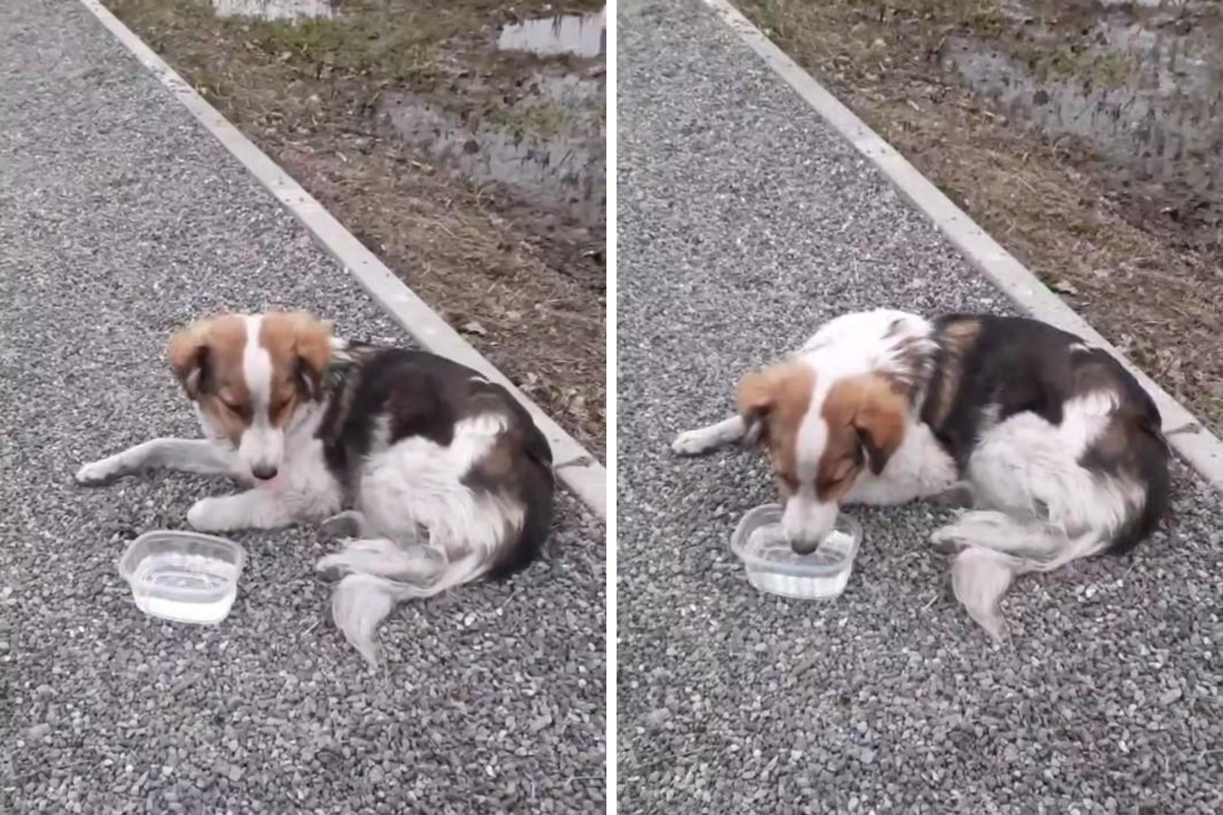 «Вот она вроде пьет, но лежит трясется. Она получается как Джек-рассел, может чуть-чуть побольше. Тут все предупреждены, продавцы в киосках. Она периодически в киоск заходит, ее пытаются поить», — говорит автор видео.