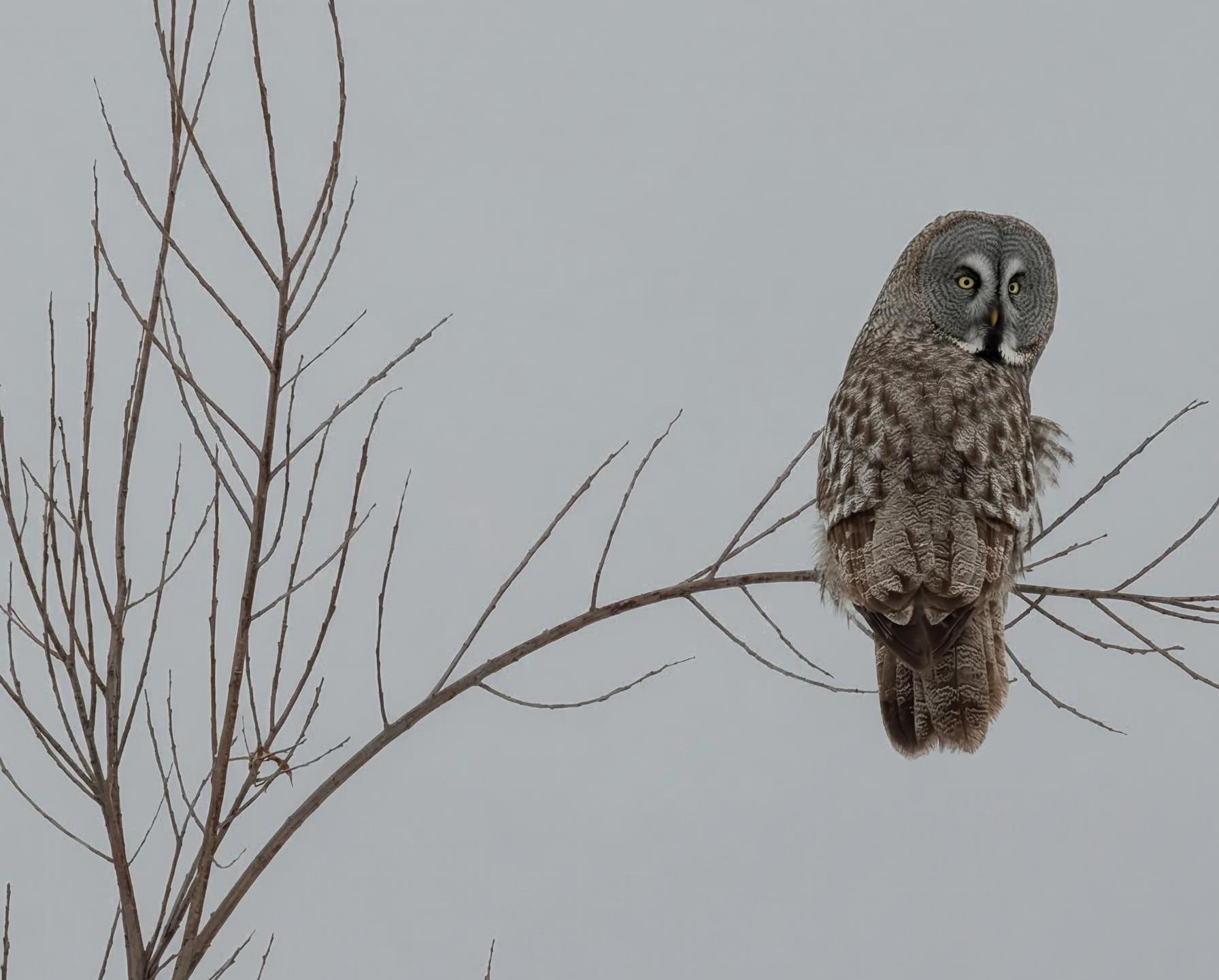 Фотография редкой совы сделана на территории Большеуковского района Омской области. Бородатая неясыть относится к крупным совам и занесена в местную Красную книгу, встречаясь в лесах области нечасто.