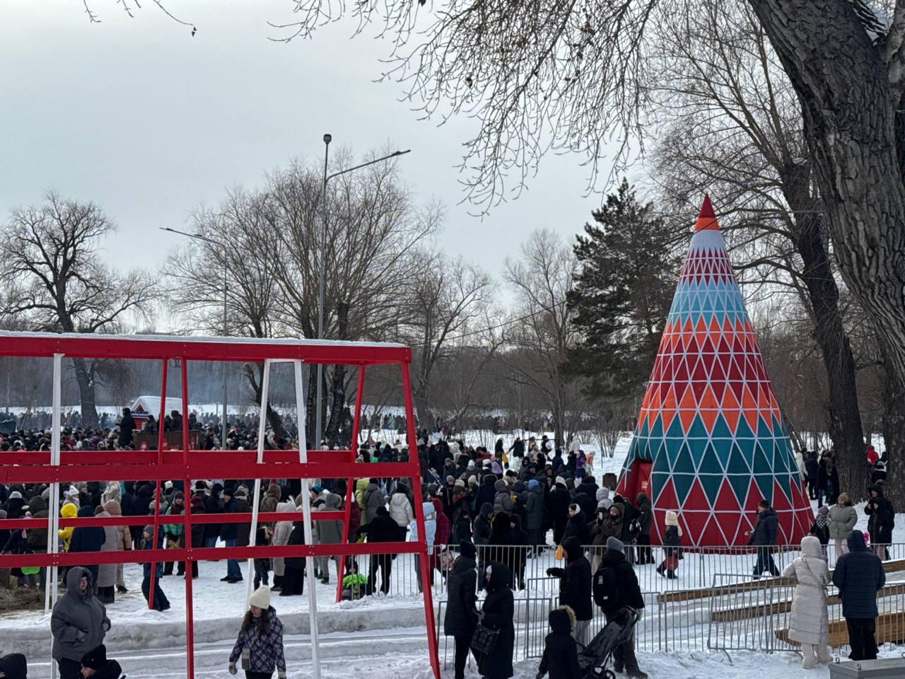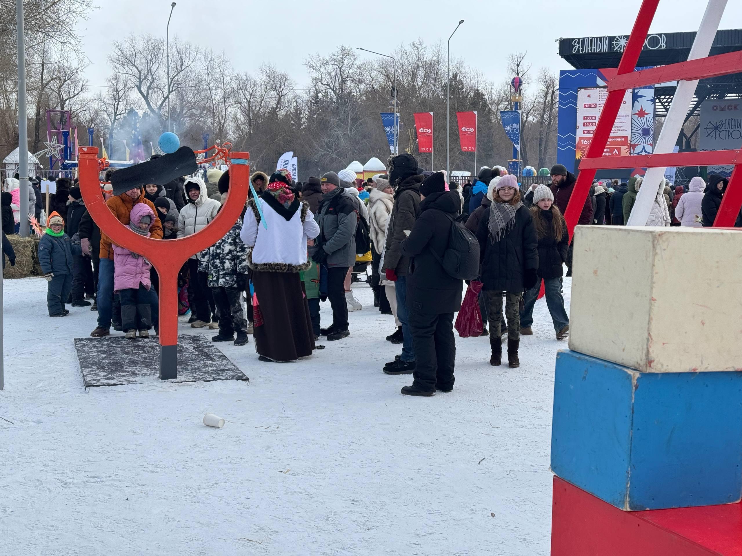 Празднование Масленицы в Омске продолжается 22 февраля. В парке «Вокруг света» на Зелёном острове собралась многочисленная толпа горожан.