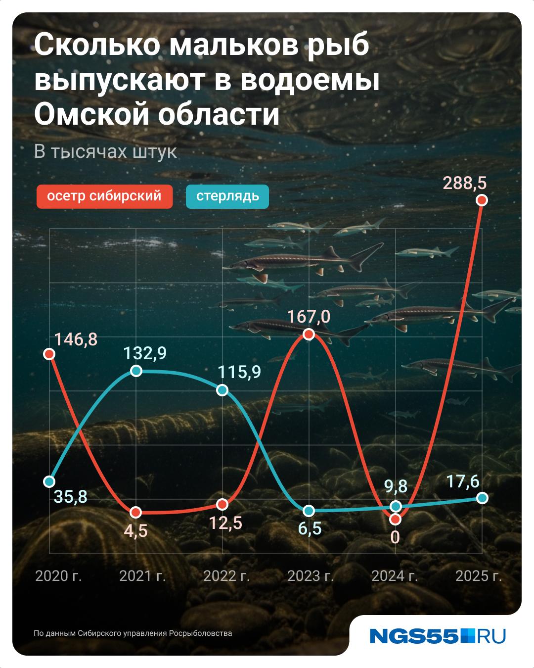 Помимо товарной рыбы, в Омской области выращивают мальков ценных видов — стерляди и осетра — для целей рыбовосстановления. Как сообщили в Сибирском территориальном отделе Росрыболовства, количество выпущенной в реки молоди сильно варьируется — от нуля до сотен тысяч особей.
