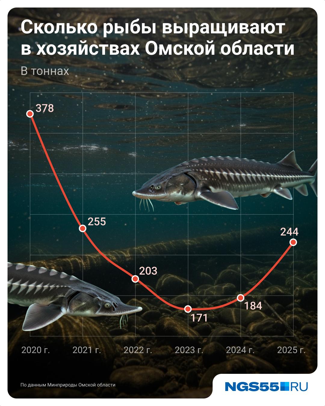 Производство аквакультуры в Омской области, сократившееся в 2023 году до 171 тонны, в 2025-м выросло до 243 тонн.