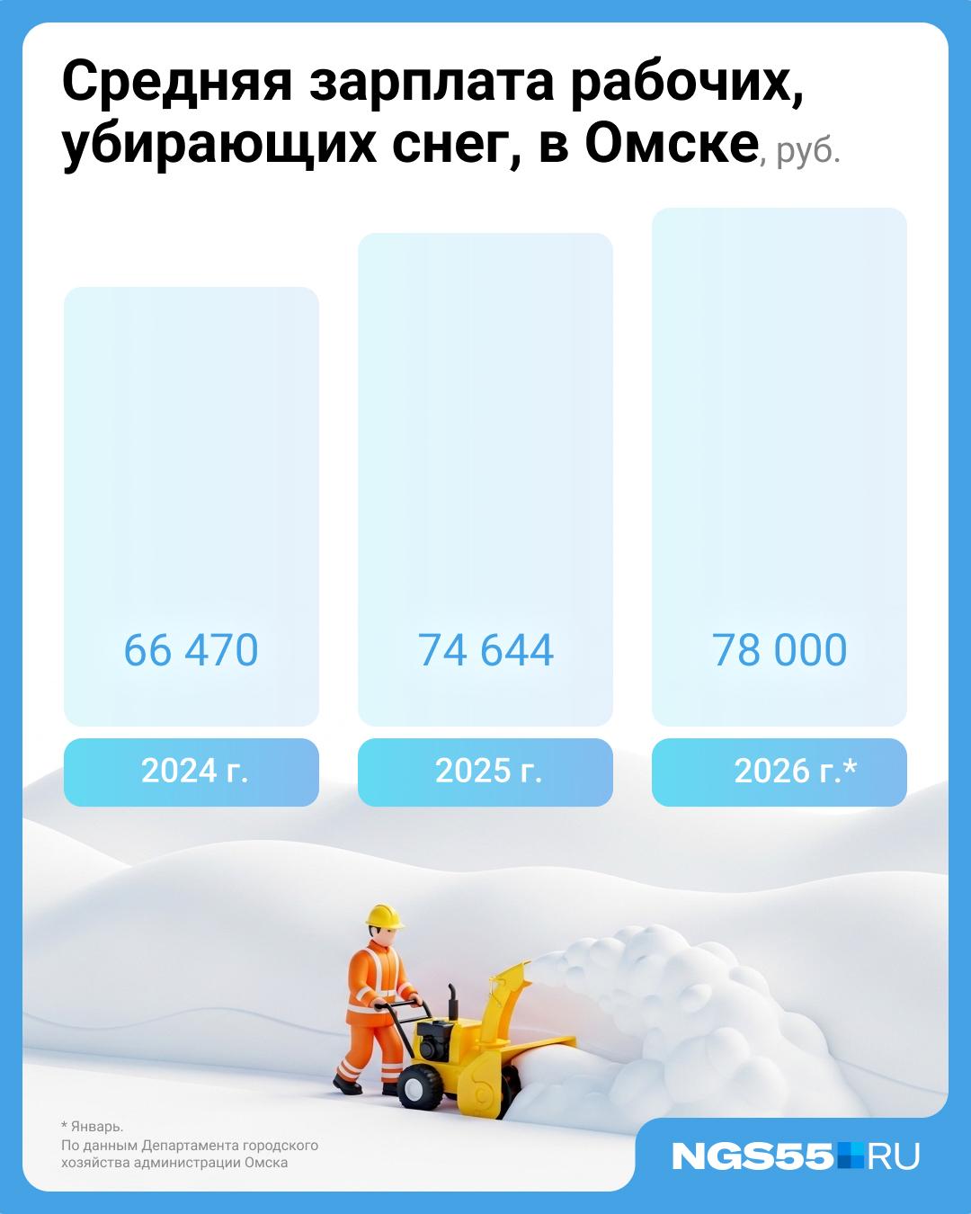 Администрация Омска через департамент городского хозяйства предоставила данные о доходах сотрудников, занятых на снегоприборке. Зарплаты этим работникам повышали на 15% как в 2024, так и в 2025 году.