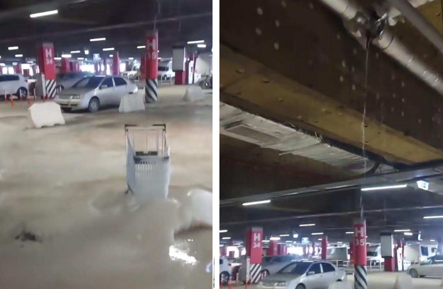 Подземную парковку «Меги» затопило водой из-за мороза