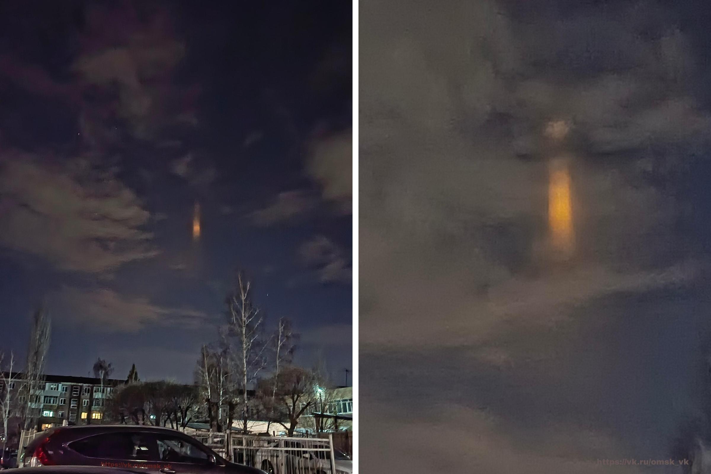 «Это световой столб. Иногда он появляется в северной стороне Омска. Свет, исходящий от фонарей, прожекторов или ярких небесных тел, отражается от граней мельчайших ледяных призм. Так и получаются световые столбы. И чем ниже источник света, тем столб выше. Поэтому световой эффект от Солнца или Луны выглядит скромнее», — пояснил астроном.